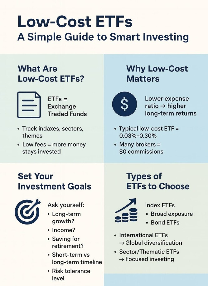 The good news is that getting started with low-cost ETFs is easier than it might seem. I’ll walk you through the key steps, what you need to look out for, and how to keep moving forward. If you want a deeper background on why low-cost ETFs matter, I often refer friends to my post on Understanding Low-Cost ETFs before they jump in.